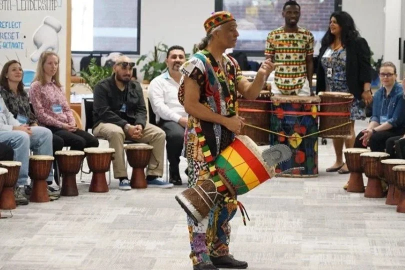 While true mastery of drumming takes many years, it's possible for anyone to enjoy. As participants learn to create sound from their instrument they'll begin feel their own rhythm and understand what it takes and how it ‘feels’ to be a part of the team rhythm.